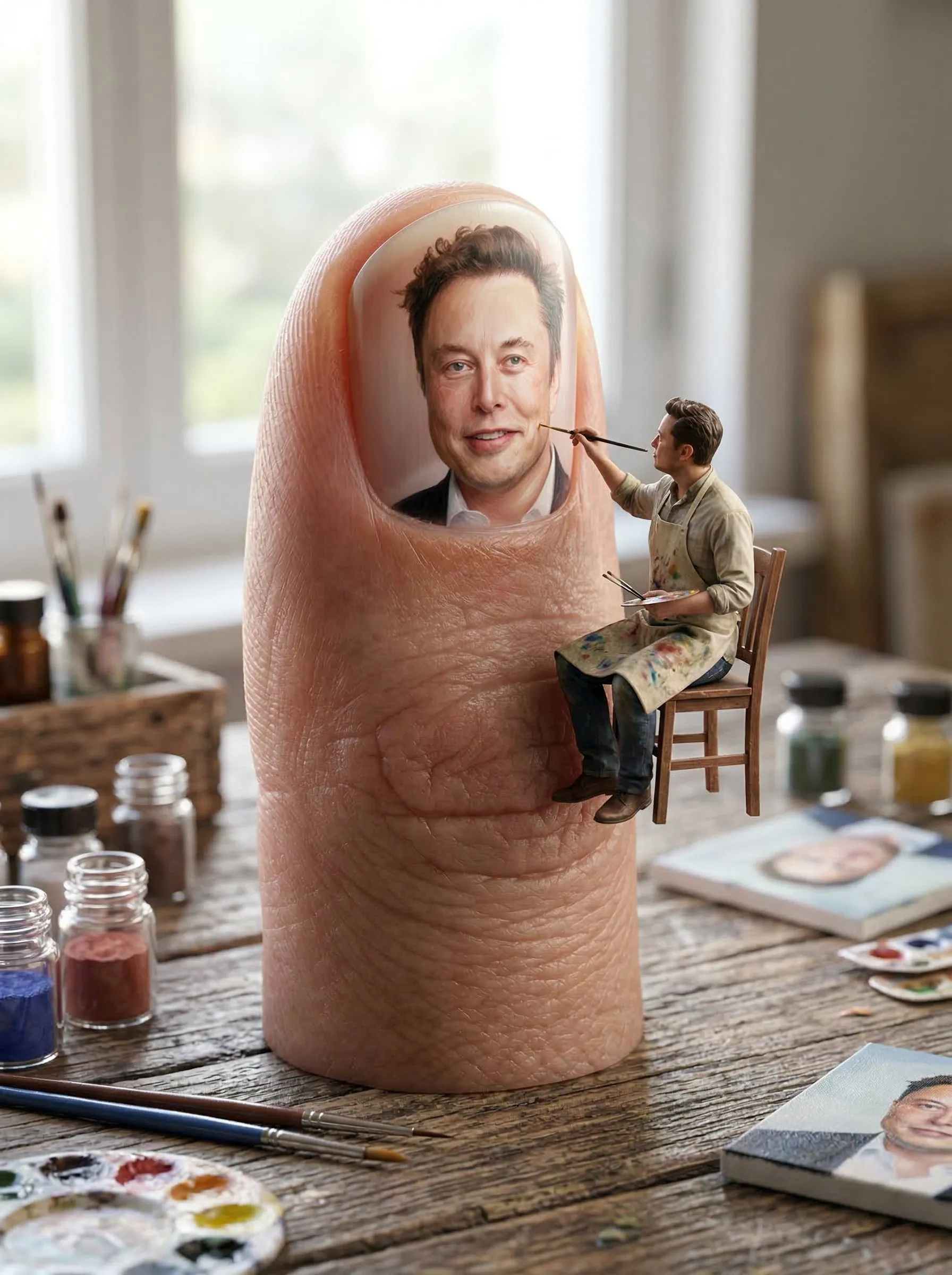 Giant Thumb Canvas with Miniature Artist (Surreal Macro Scene)